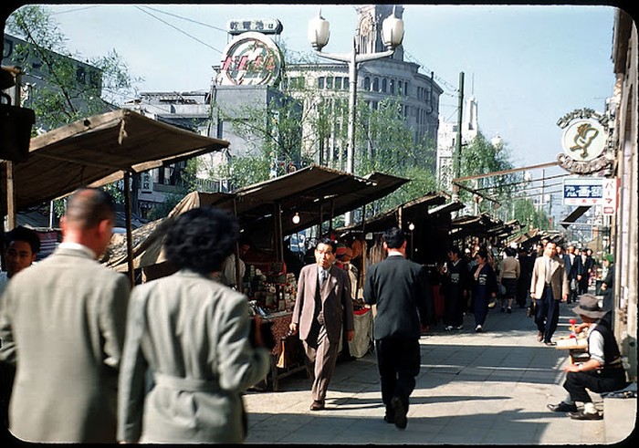 Tokyo tahun 1950-an suasananya seperti ini, di salah satu sudut kotanya. Jepang baru membangun kembali setelah kalah di Perang Dunia Kedua dan dijatuhi bom atom. Foto: Vintages