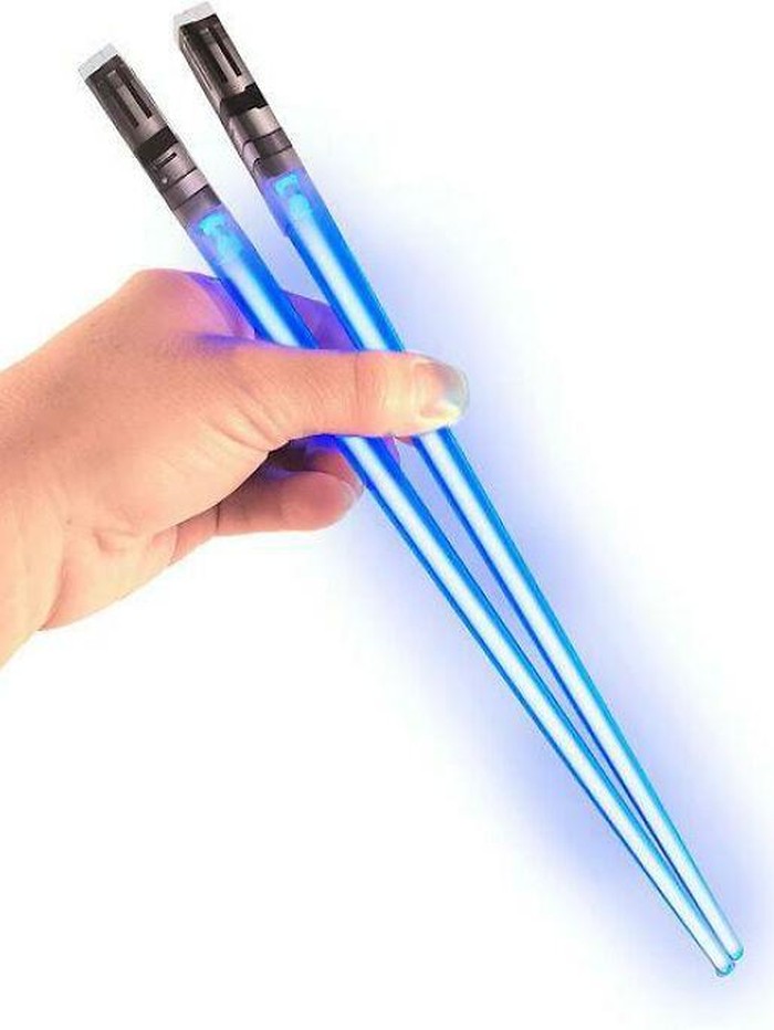 Sumpit model lightsaber yang bisa menyala. Mungkin cocok buat makan mi instan saat mati lampu.Β Dok. Boredpanda