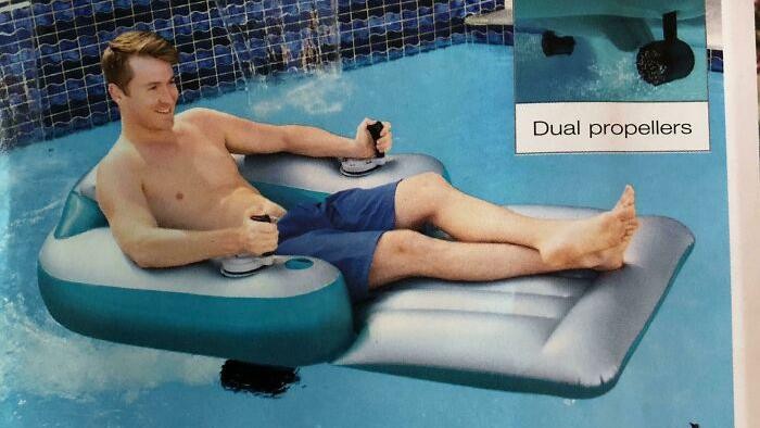 Kasur apung kolam renang dengan penggerak motor. Hmm buat apa ya?Β Dok. Boredpanda