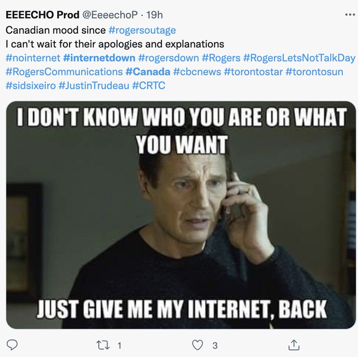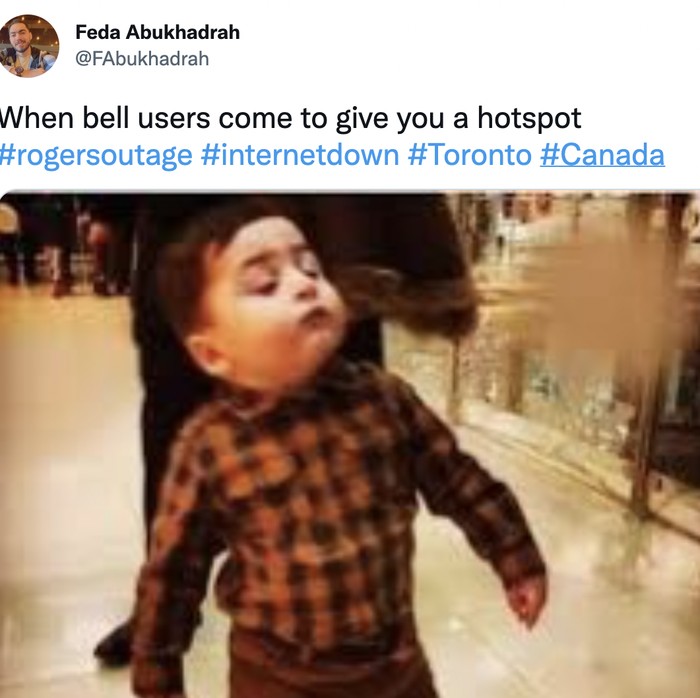 Pengguna operator selain Rogers bisa membusungkan dada karena masih bisa memakai internet. Foto: Twitter