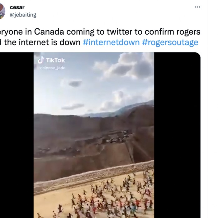 Warga Kanada ramai menyerbu Twitter untuk memastikan apakah benar layanan internet tumbang. Foto: Twitter