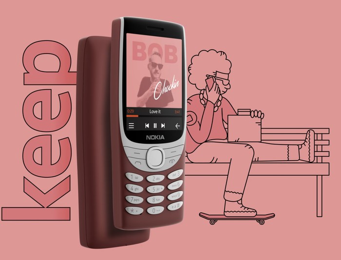 Wujud Nokia 8210 reborn berbasis pada versi aslinya, tapi sudah mendapatkan sentuhan modern dan fitur-fitur baru. Foto: HMD Global