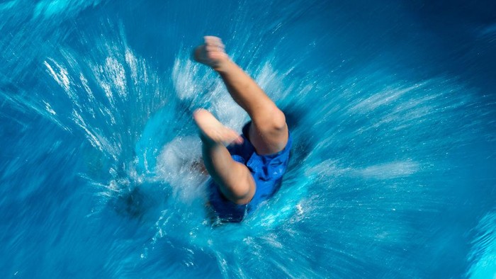Aktivitas melompat ke dalam kolam renang pun terlihat tak biasa dengan teknik long exposure ini.