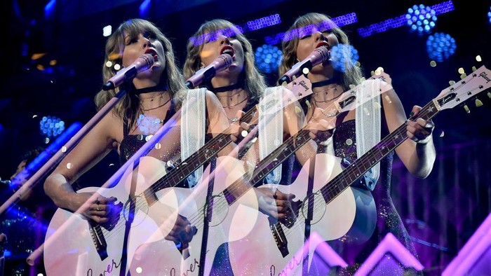 Taylor Swift nampak 'membelah diri' saat manggung di acara iHeartRadio.