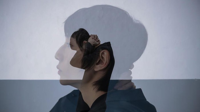 Dalam foto terlihat seorang karakter cerita rakyat China dijepret close up dengan teknik double exposure.