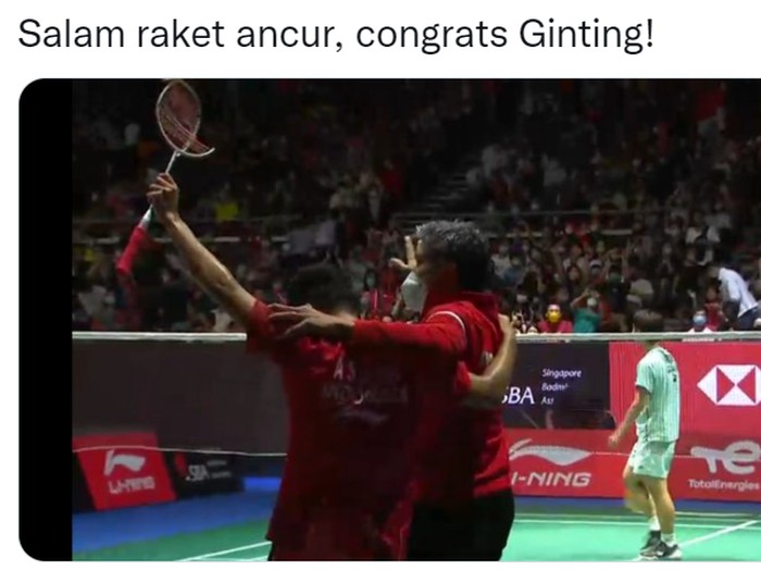 Meme Ginting mencuri hati juga muncul lagi kalau Ginting habis menang. Foto: Twitter