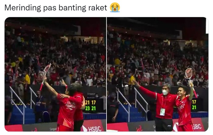 Momen Ginting membanting raket jadi viral di Twitter. Netizen ikut merasakan emosi seperti Ginting. Foto: Twitter