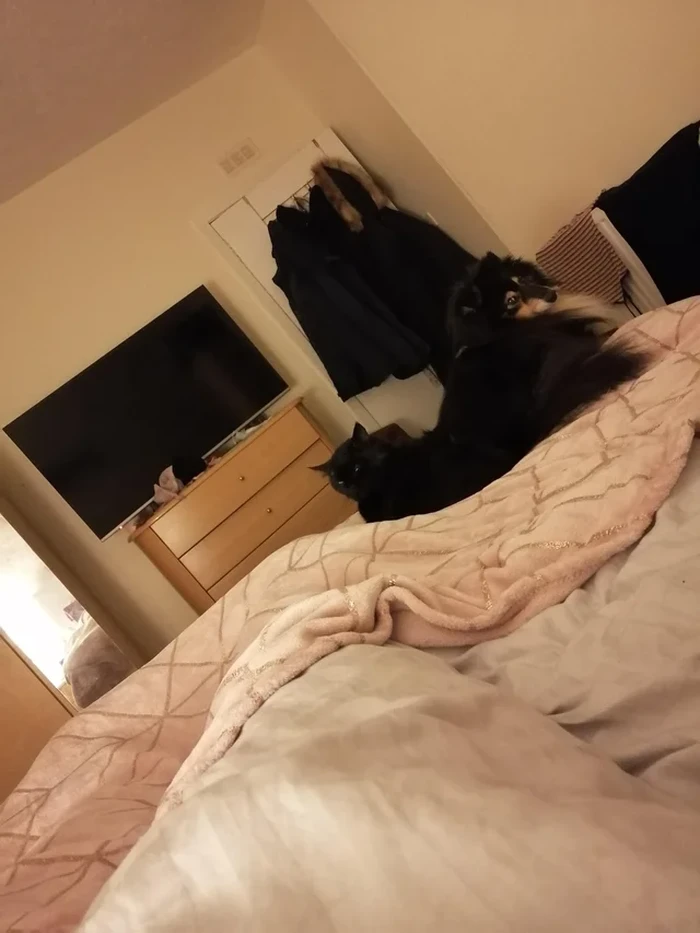 Anjing yang tampak seperti beruang karena gambar di spreinya. Foto: Buzzfeed