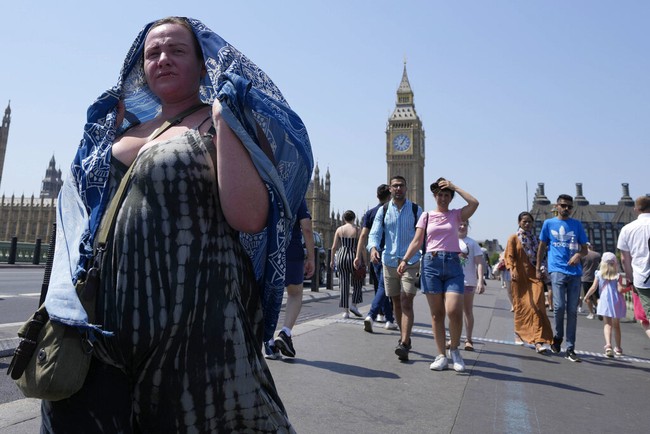 Inggris sedang dilanda suhu panas yang parah, bahkan memecahkan rekor. Untuk pertama kalinya, temperatur udara di negara kerajaan itu tembus 40 derajat celcius. Warga pun tersiksa karena tak biasa mengalaminya. Foto: Associated Press