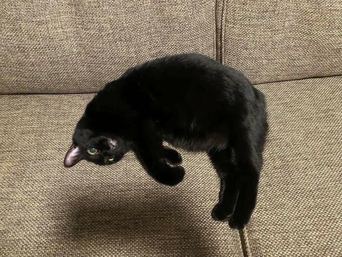 Kucingnya seperti melayang. Tapi coba perhatikan baik-baik.Β Dok. Boredpanda