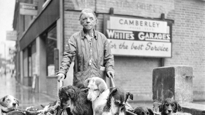 Potret Camberley Kate, alias Kate Ward dan anjing liarnya di Inggris pada tahun 1962. Ia merawat lebih dari 600 anjing selama hidupnya dan tidak pernah membiarkan anjing yang dirawatnya itu pergi.Β Foto: Facebook