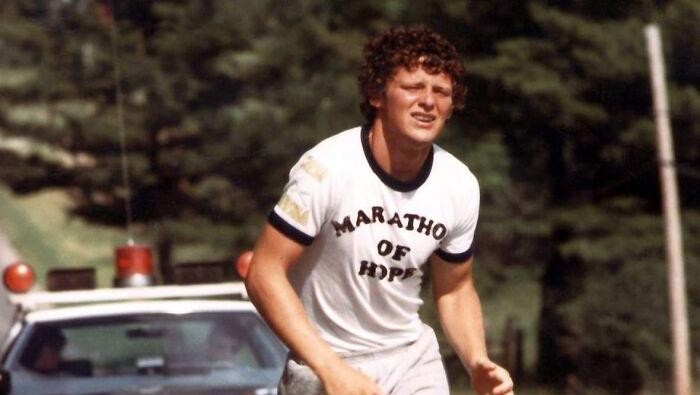 Terry Fox (21), Pria asal Kanada yang kehilangan kaki karena kanker. Ia memulai lari lintas Kanada untuk mengumpulkan uang untuk penelitian kanker dan berlari setara dengan full marathon sehari. Ia berhasil lari mencapai 143 Hari dan 5.373 Km sebelum penyebaran kankernya memaksa ia untuk berhenti berlari. Lalu, pada Juni 1981, ia meninggal dunia. Salut ya sama perjuangannya. Foto: Facebook