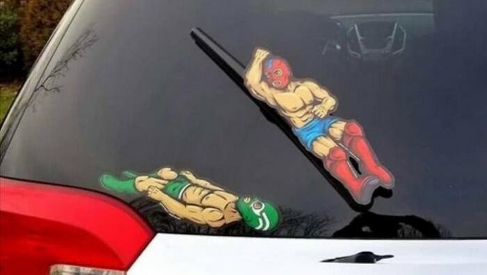 Superhero lagi nyantai di kaca mobil nih..