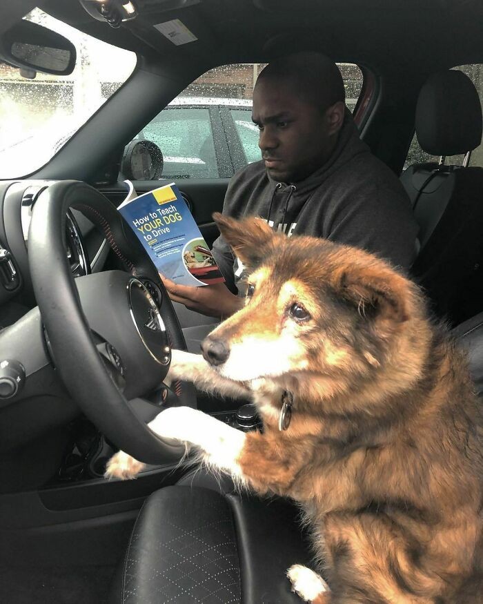 Menyetir mobil. Foto: Instagram/Doggo Taxi