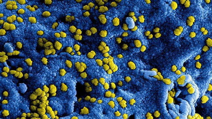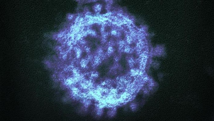 Masih dengan virus Corona, kali ini berbentuk bola berwarna biru.