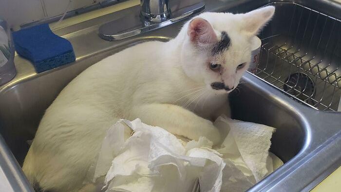 Si empus anteng banget acak-acak tisu di wastafel. (Saintphoenixxx/Bored Panda)