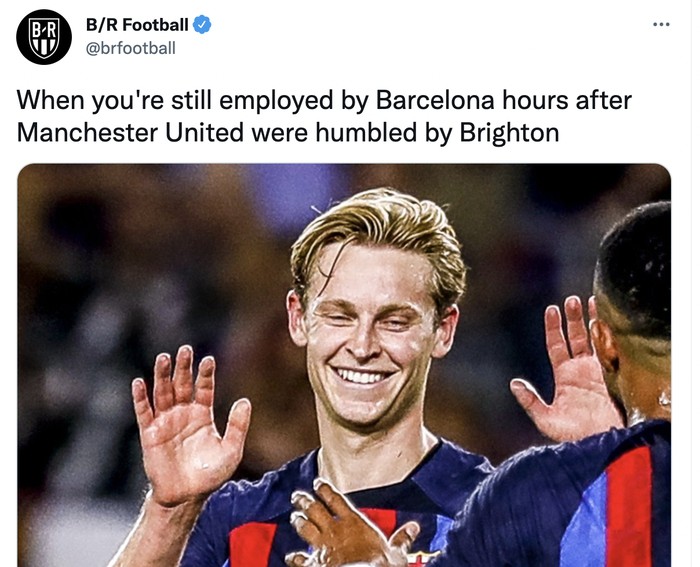 Jakarta - Manchester United dilibas Brighton 1-2 di kandang sendiri pada pertandingan pertama Liga Inggris musim ini. Mereka pun jadi sasaramn meme kejam.