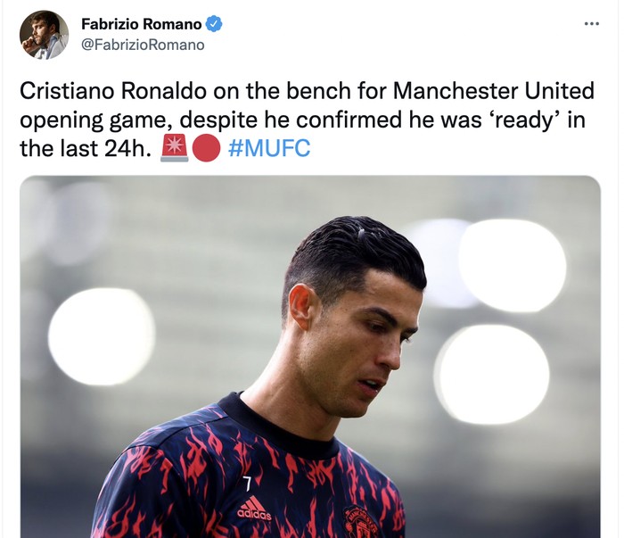 Ronaldo dibangkucadangkan meskipun dia menyatakan siap bermain. Foto: Twitter