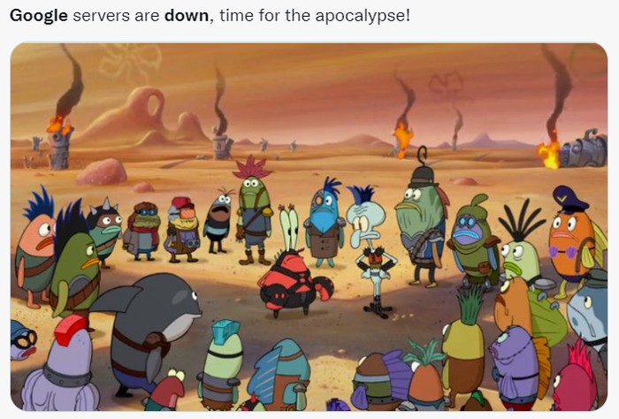Meme Spongebob, Google down rasanya siap-siap untuk kiamat. Foto: (Twitter)