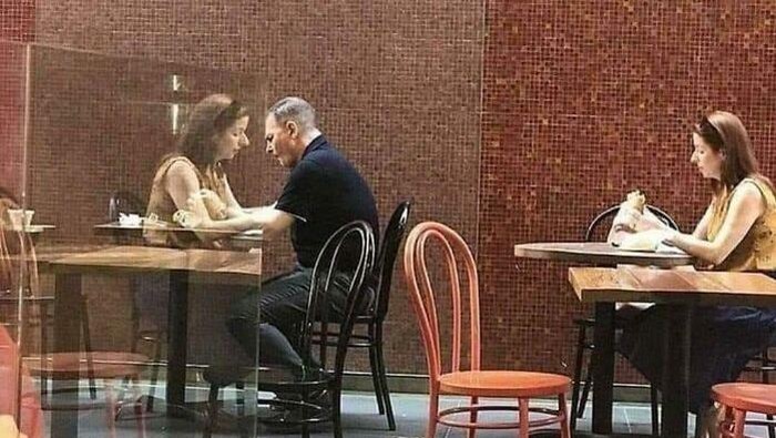 Wanitanya bukan kembar, tapi itu pantulan dari kaca.