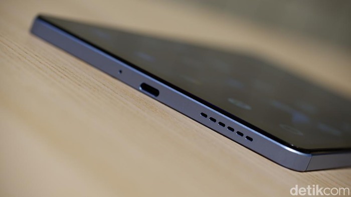 Bagian belakang terdapat speaker dan port USB Type C untuk mengisi baterai berkapasitas 6.400 mAh. Foto: Adi Fida Rahman/detikINET