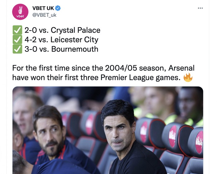 Musim-musim di mana Arsenal menang tiga laga pembuka berurutan di Premier League. Foto: Twitter