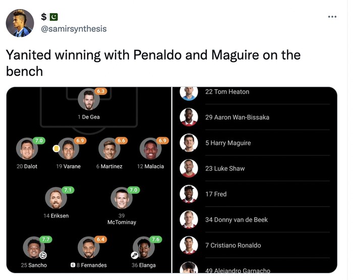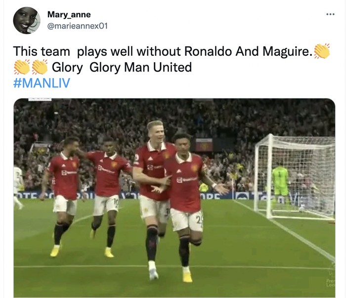 Tim ini rasanya bermain lebih baik tanpa Ronaldo dan Maguire. Foto: Twitter