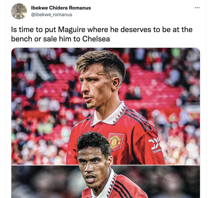 Melihat penampilan dua bek ini, mungkin sudah saatnya Maguire dicadangkan atau dijual saja. Foto: Twitter