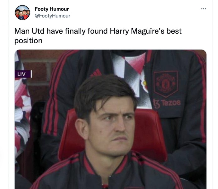 Manchester United akhirnya menemukan posisi terbaik untuk Harry Maguire, yakni di bangku cadangan. Foto: Twitter