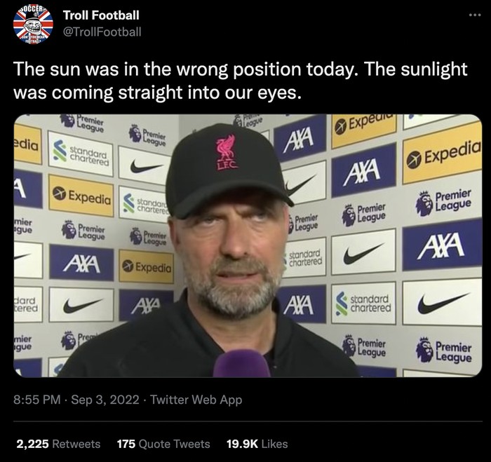 Juergen Klopp juga jadi korban ledekan netizen. Foto: Screenshot Twitter