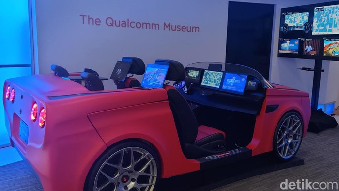 Smart car yang dikembangkan Qualcomm dengan teknologi 5G. Teknologi 5G pada smart car akan membantu navigasi mobil selain juga memberikan layanan hiburan kepada penumpangnya. Foto: Fitraya Ramadhanny/detikcom