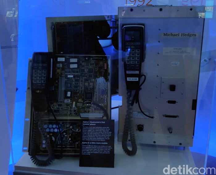 Kita akan melihat telepon seluler pertama buatan Qualcomm yaitu Alpha I dan Alpha II. Bentuknya sebesar koper briefcase! Foto: Fitraya Ramadhanny/detikcom