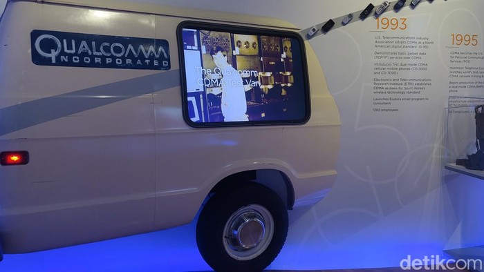 CDMA Test Van yang bersejarah. Alpha I dulu dibawa berkeliling dengan mobil van Qualcomm untuk menguji coba yang namanya mobile phone dan menandai kelahiran CDMA tahun 1989. Foto: Fitraya Ramadhanny/detikcom
