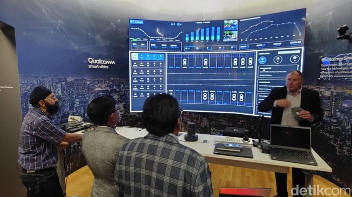 Smart City yang dikembangkan Qualcomm dengan teknologi 5G. Pemerintah kota bisa mengatur seluruh layanan untuk penduduk dari satu tempat saja, dari urusan parkir sampai listrik dan air minum. Foto: Fitraya Ramadhanny/detikcom