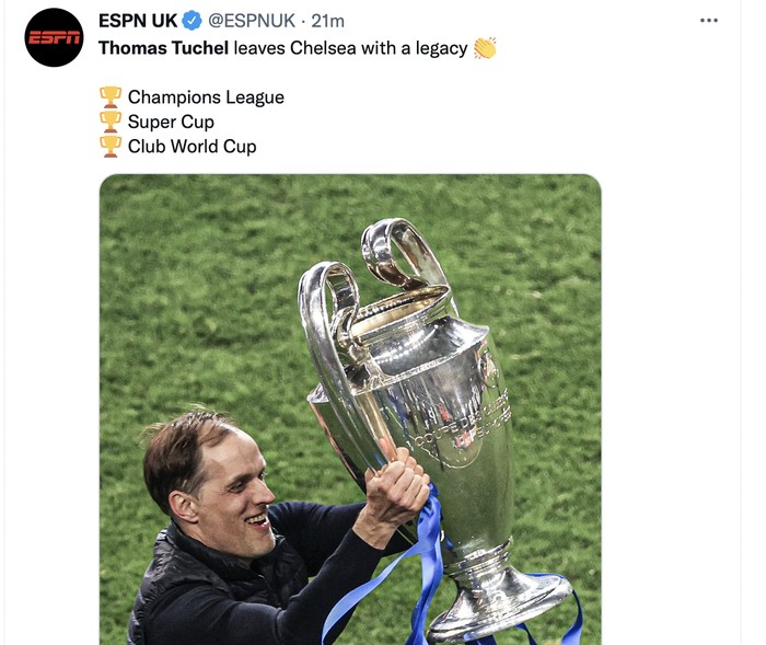 Thomas Tuchel pergi sebagai legenda Chelsea, tulis akun ini. Foto: Twitter