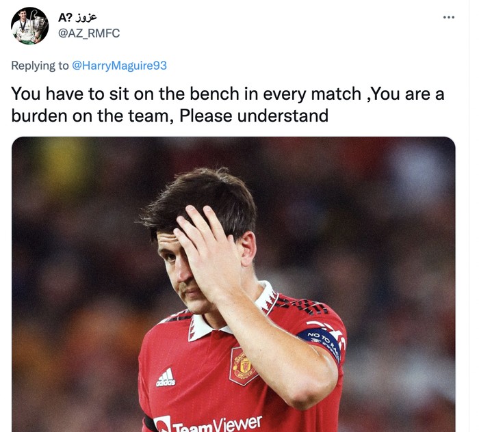 'Kamu harus duduk di bangku cadangan setiap laga. Kamu adalah beban bagi tim, tolong dimengerti,' pesan akun ini pada Maguire. Foto: Twitter