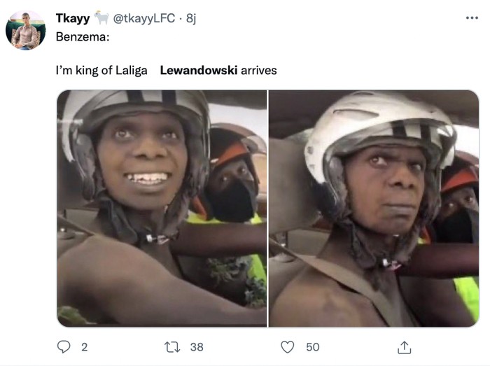 Meme Karim Benzema jadi ada pesaing di La Liga. Foto: Twitter