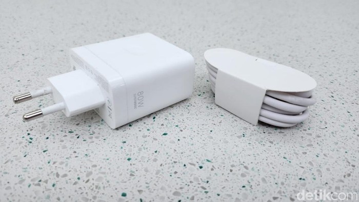 Charger Super VOOC 80W dan kabel charger masih diberikan. Foto: Adi Fida Rahman/detikINET
