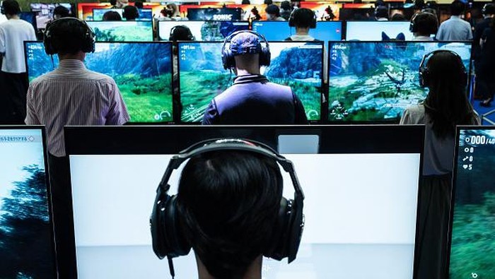 Salah satu pengunjung mencoba permainan virtual reality. Jepang diketahui sebagai basis perusahaan game global dan besar di dunia.Β Β