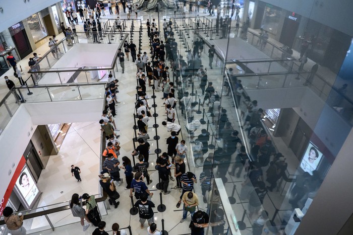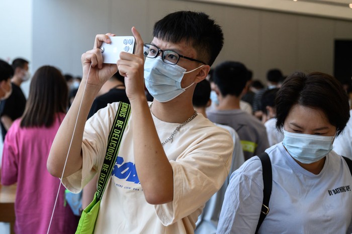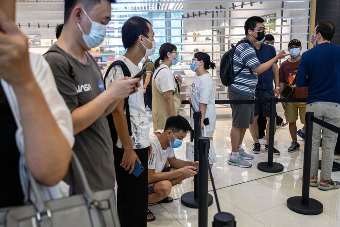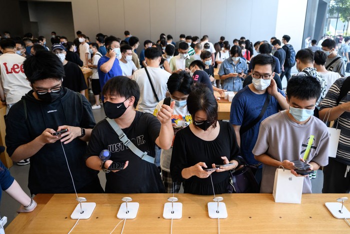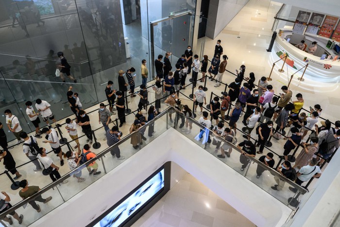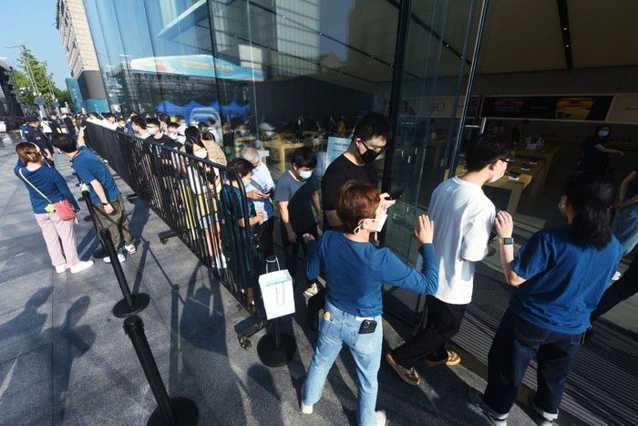 Suasana menjelang masuk ke Apple Store di Guangzhou. Foto: Getty Images
