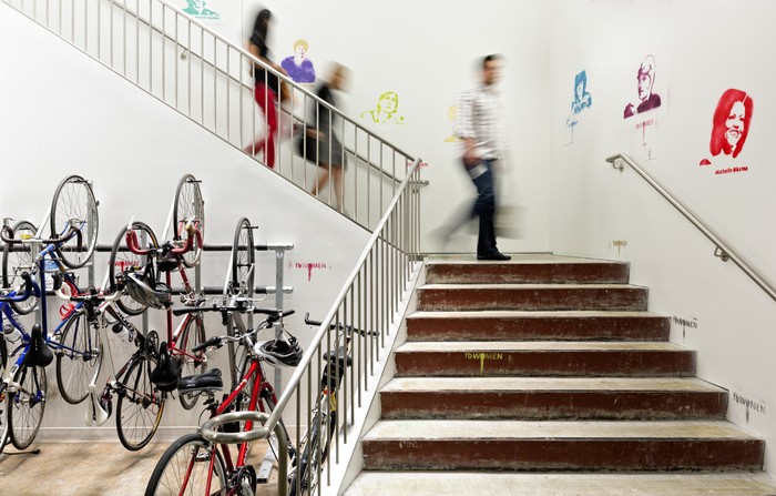 Sepeda para karyawan bisa ditaruh di dalam kantor seperti ini. Foto: Office Snapshot