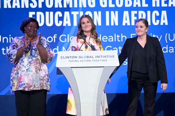 Semenjak berpisah dengan Bill Gates, Melinda terus aktif dan punya banyak kesibukan. Ini saat menjadi pembicara di acara Clinton Global Initiative. Foto: Getty Images