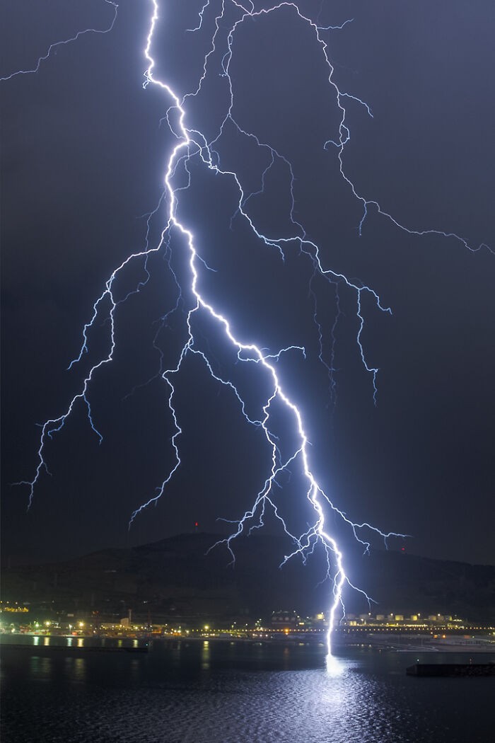 Malam mencekam saat petir menyambar sebuah pantai di Spanyol. Β