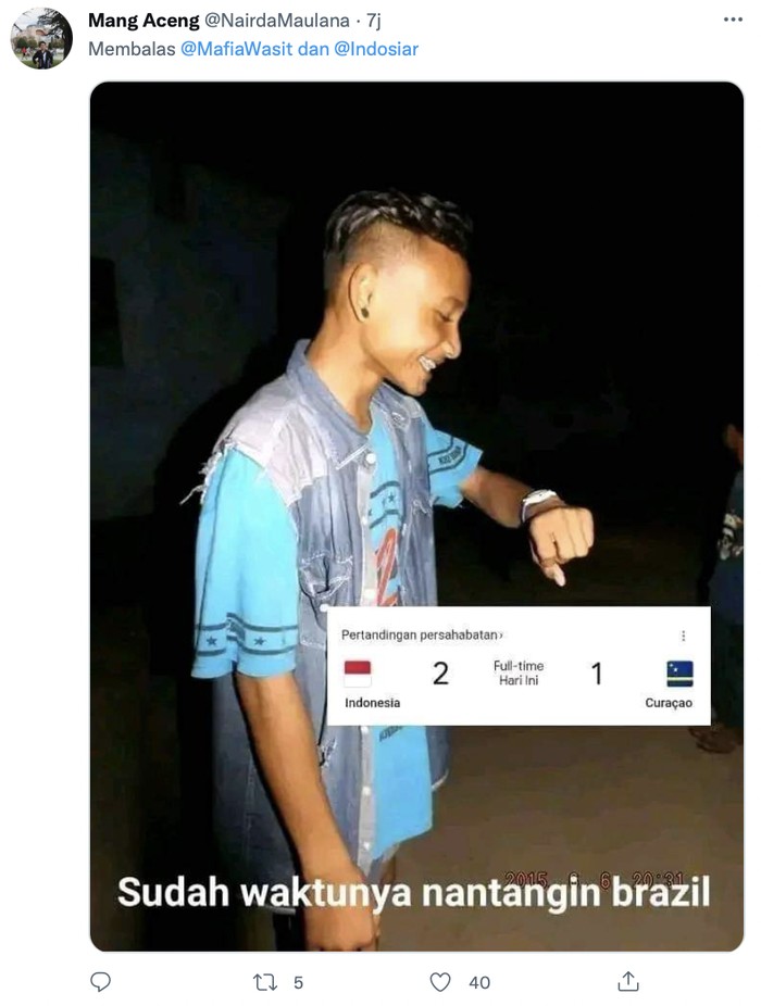 Seloroh netizen, Timnas Indonesia siap lawan Brasil yang penuh bintang pesepakbola. Foto: Twitter