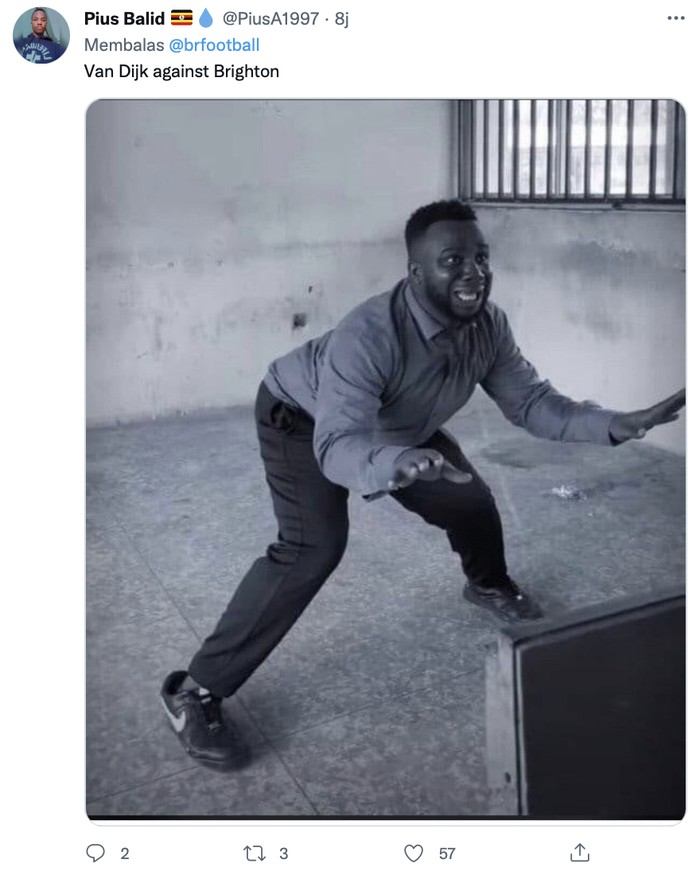 Penempatan van Dijk yang dinilai ceroboh saat lawan Brighton & Hove Albion. Foto: Twitter