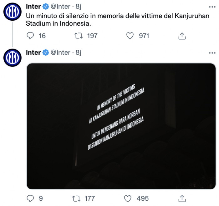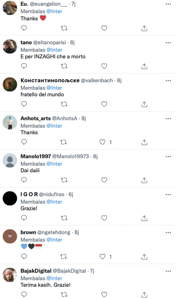 Ucapan netizen RI untuk Inter. Foto: Twitter