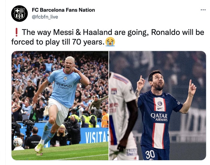 Selain Haaland, Messi belakangan juga bagus performanya. Ronaldo di sisi lain makin melempem. Foto: Twitter