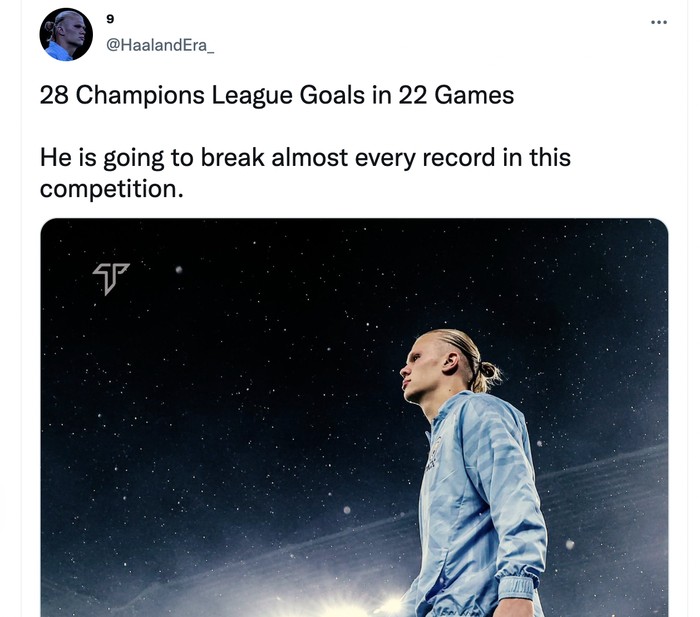 Haaland telah mencetak 22 gol dalam 28 laga Liga Champions. Tampaknya dia akan memecahkan banyak rekor. Foto: Twitter