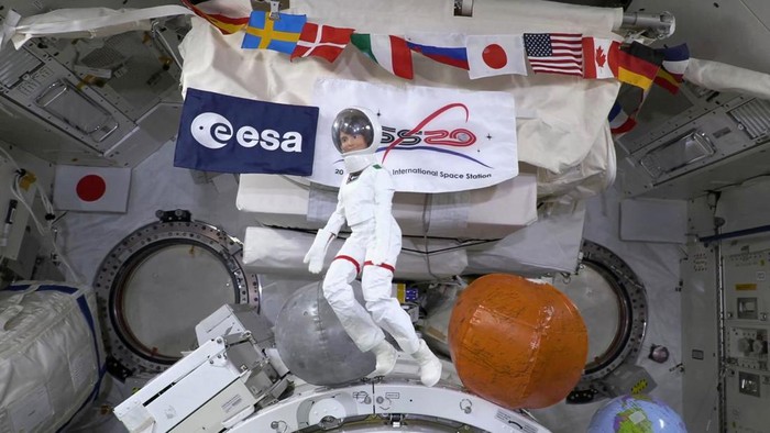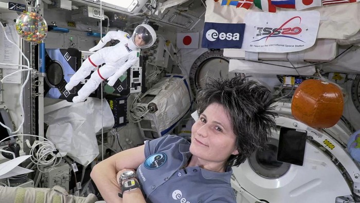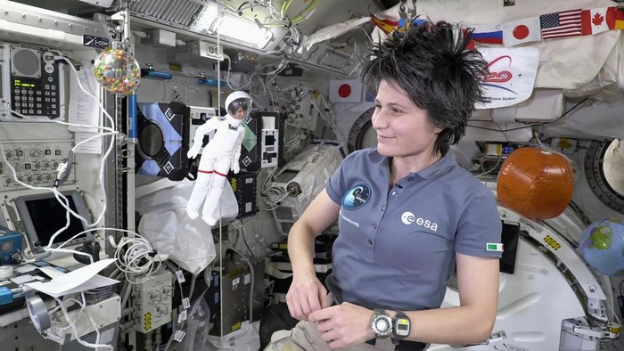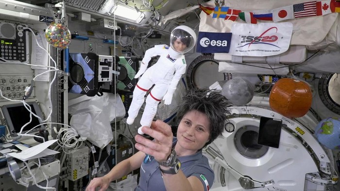 Cristoforetti baru-baru ini meluangkan waktu untuk menjelaskan beberapa eksperimen yang dilakukan di atas ISS. Dia dan Barbie-nya yang mengenakan pakaian antariksa melayang dalam gravitasi nol.