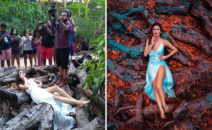 Fotografi kreatif mampu menghidupkan gambar yang ada di benak mereka meski dengan perlengkapan seadanya. Berikut berbandingan foto saat pemotretan dan hasilnya.
